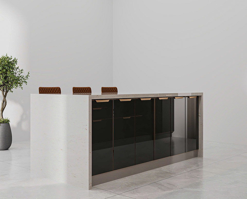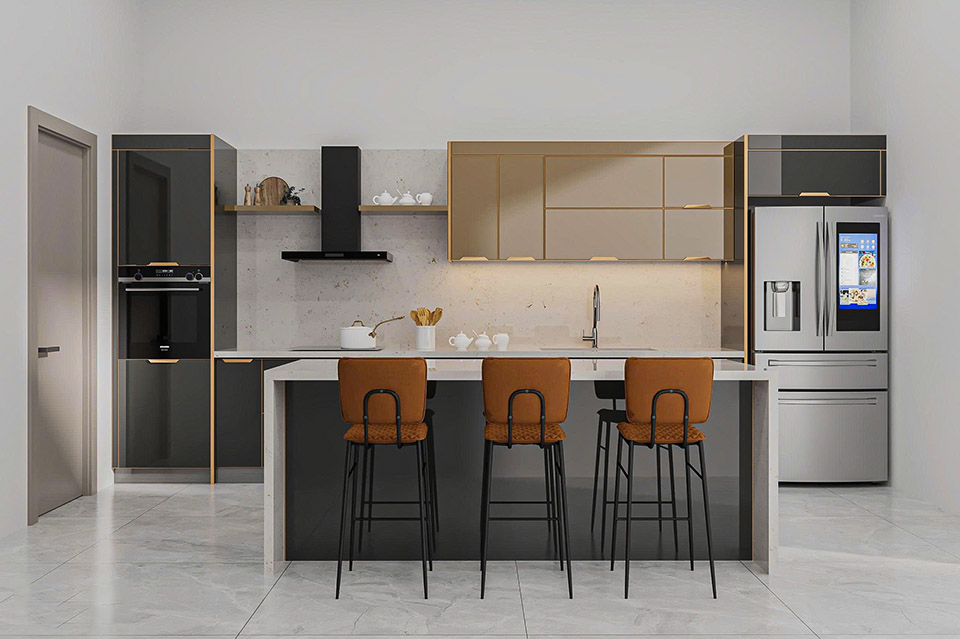 Hệ tủ bếp sử dụng khung inox cao cấp, gia công chính xác bằng máy móc hiện đại, đảm bảo độ chắc chắn, chống han gỉ, chống ẩm và mối mọt tuyệt đối. Phần cánh kính cường lực được lựa chọn với tông màu trang nhã, bề mặt sáng bóng, giúp không gian bếp trở nên rộng rãi và tinh tế hơn. Đây cũng là dòng vật liệu được nhiều gia đình yêu thích nhờ khả năng chịu lực tốt, dễ lau chùi và giữ được vẻ đẹp lâu dài.